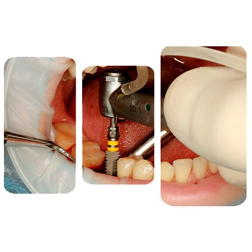 En este caso el odontólogo deberá realizar una incisión en la encía precisamente alrededor del diente y elevar los colgajos para cortarlos y quedando así expuesto el hueso. Entonces el especialista podrá agarrar finalmente el diente y extraerlo.